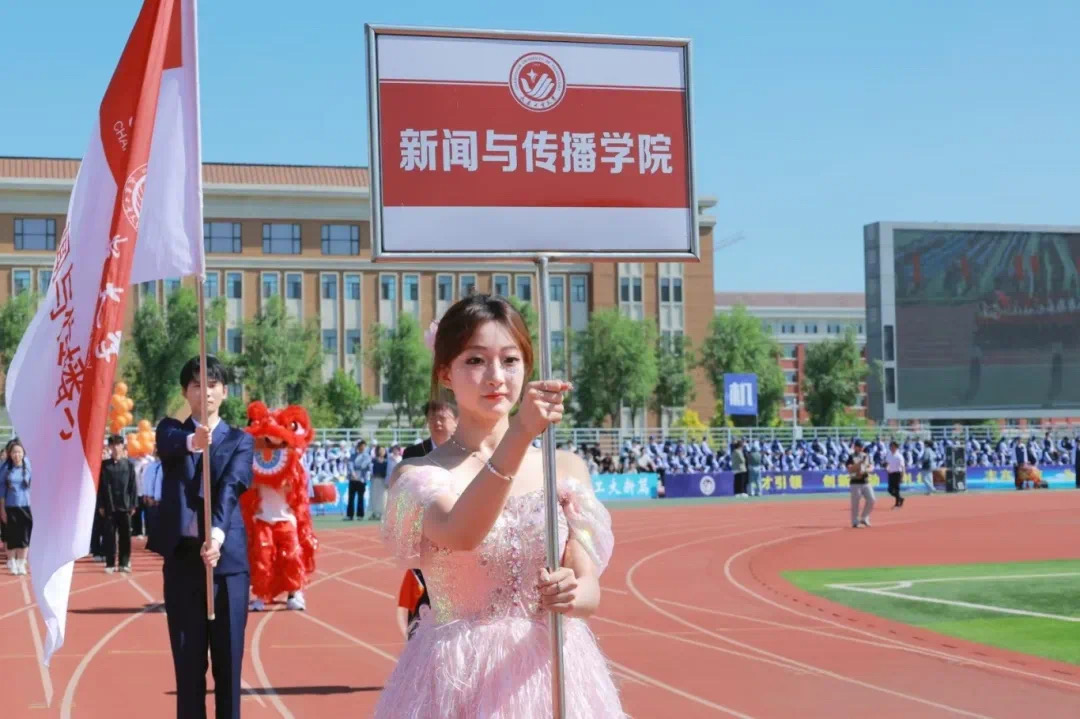 开幕式上,新闻与传播学院方阵率先登场,成为全场瞩目的焦点。同学们身着整齐的服装,迈着铿锵有力的步伐,眼神中透露出坚定与自信,口中喊着嘹亮的口号,精神抖擞地走向主席台。一张张青春洋溢的脸庞,不仅展现了新传学子朝气蓬勃的精神风貌,更彰显出他们敢于创新、勇于突破的时代气质,为开幕式增添了一道亮丽的风景线。