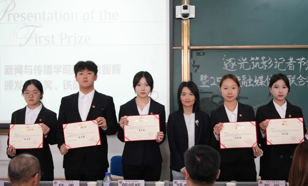 2025年11月6日12:40,新闻与传播学院于301教室召开第一届新闻与传播学院“逐光筑影”记者节活动月启动仪式暨25年融媒体及联合部门表彰仪式。