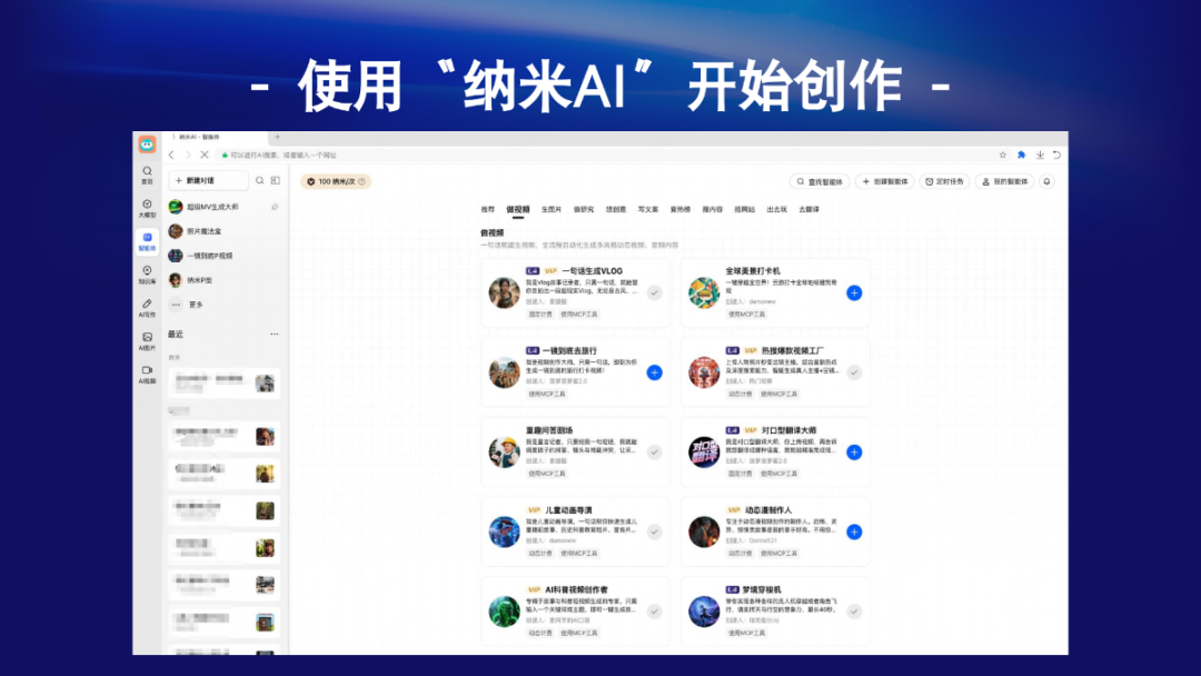 作品主体需使用纳米AI生成,且使用纳米AI生成的视频内容占比不得低于80%可以进行必要的后期剪辑,如调色、配音、配乐,添加字幕及转场特效等。作品需在视频起始画面和视频右下角添加显著的提示标识,标明作品系AI生成。