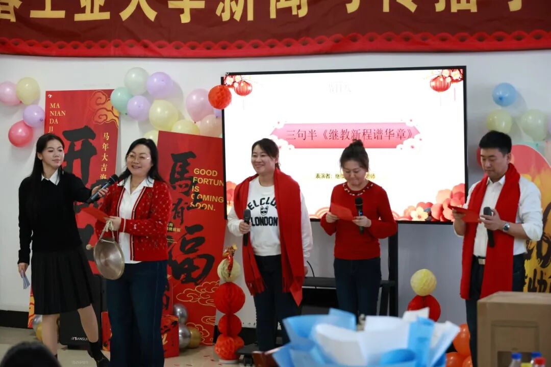 本网讯(通讯员:李垚娇、纪周涛)旧岁辞章凝暖意,新年序章绘新颜。2026年12月25日,新闻与传播学院与继续教育学院联合举办迎新年联欢会,本次联欢会以“良师携益友,马岁共清欢”为主题。两院师生相聚一堂,共赴新春之约,在欢声笑语中迎接马年到来。整场活动满溢着师生相伴的温情与同欢的喜悦,充分展现了新闻与传播学院与继续教育学院凝心聚力、和乐相融的美好风貌。